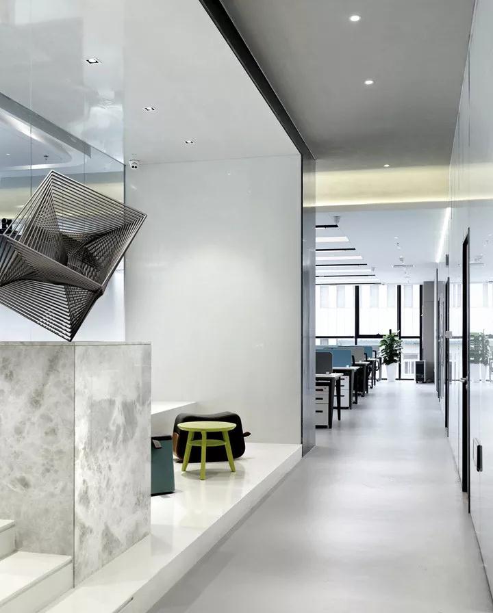 除此之外,裝修公司根據不同的使用位置,采用多種不同質感的材質進行搭配,豐富視覺層次。為保證空間的通透性,大量運用了玻璃和纖維織物,使得空間更加明亮、通透與柔和,營造多層次交流氛圍。