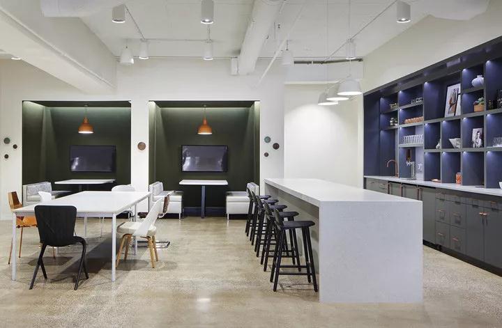 設計融入了經典的大理石石材、金屬銅、軟木、漂亮的飾品、以及所需的設計模式去支持和服務于銷售團隊,裝修公司在整個設計中以互補的形式集成在一起,營造出一種動感的組合形式,向設計師和客戶展示如何在不同品牌之間建起聯系的紐帶。展示設計展示了8×10的小型辦公室,這是現代辦公室裝修設計中常見的規格。同時,這里僅展示6×6的工作站,并運用同一產品去呈現多樣化的組合方式。這是一個重要的展示形式,深圳寫字樓裝修設計向客戶演示產品是如此靈活富于變化,去滿足各種形式的工作需求。